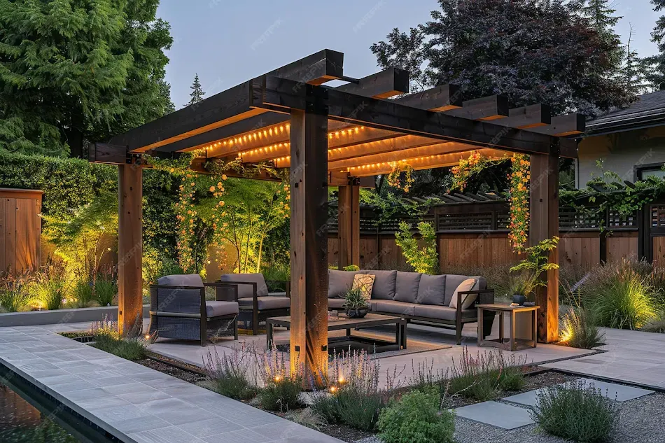 Whether you’re aiming for a shaded lounge area, vine-covered retreat, or pergola with built-in lighting and entertainment features, we design to your vision.